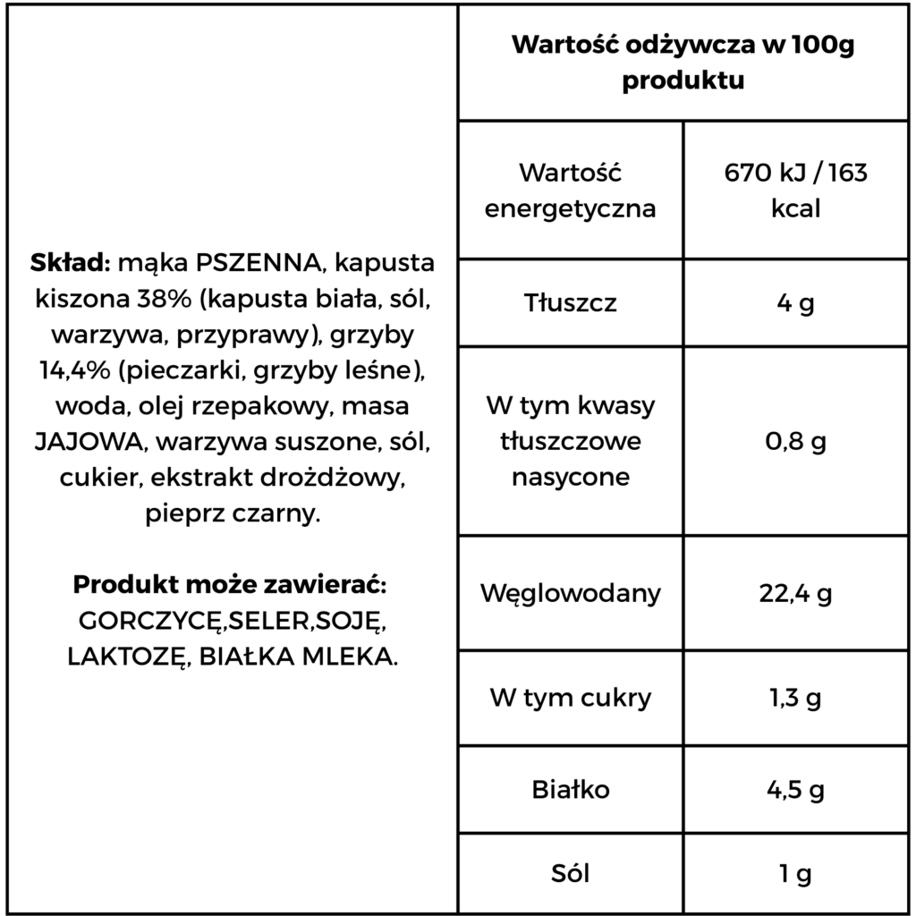 Tradycyjne polskie danie, którego nie może zabraknąć na wigilijnym stole. Wyjątkowo delikatne, dobrze doprawione, ciasto tak delikatne, że rozpływa się w ustach. Produkt oznaczony certyfikatem najwyższej jakości QAFP.