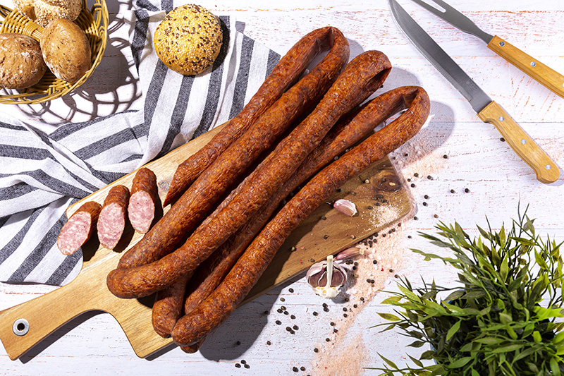 Kiełbasa Bohuna to najwyższej jakości produkt, wyprodukowany z wysokiej klasy mięsa wieprzowego. Wędzona w tradycyjnych wędzarniach opalanych drewnem dębowym i bukowym.