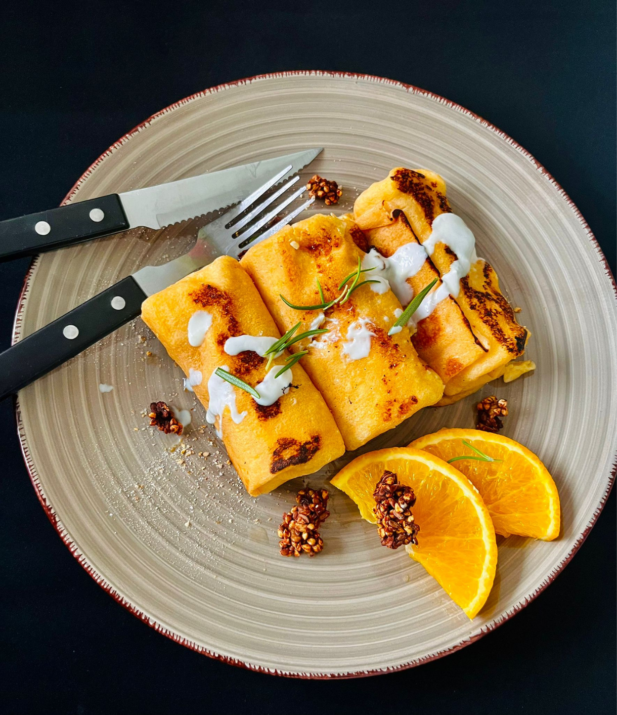 Wyjątkowe połączenie kremowego twarogu i świeżej, soczystej pomarańczy zamknięte w cienkim, puszystym cieście naleśnikowym. To deser lub słodkie danie obiadowe, które zachwyca równowagą między delikatną słodyczą a lekką, cytrusową świeżością.