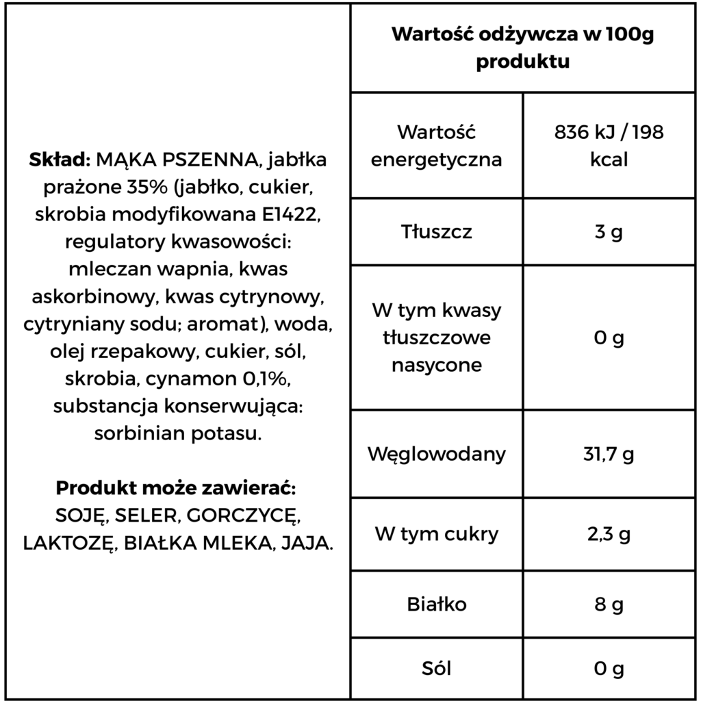 Wyrazisty smak cynamonu w połączeniu z jabłkiem to smak kojarzący się ze świątecznym ciepłem, a dla niektórych to smak dzieciństwa. Warto spróbować naszego produktu; być może to dobry sposób na miłe wspomnienia.