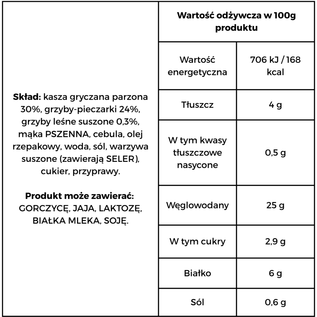 Pierogi te to doskonała alternatywa dla tradycyjnej potrawy jaką jest kasza z sosem grzybowym. Połączenie tych składników z cienko rozwałkowanym ciastem nasyci każdego.