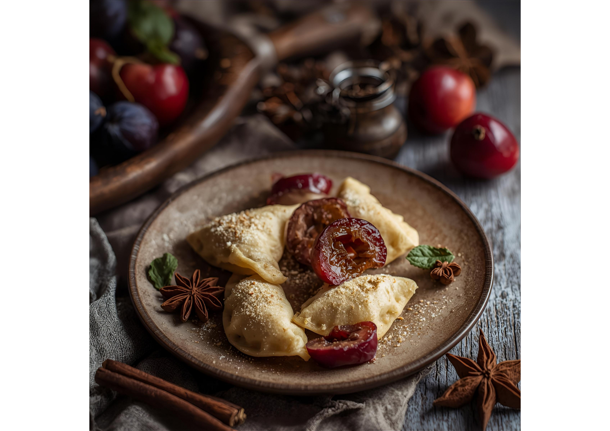 PIEROGI Z KORZENNĄ ŚLIWKĄ